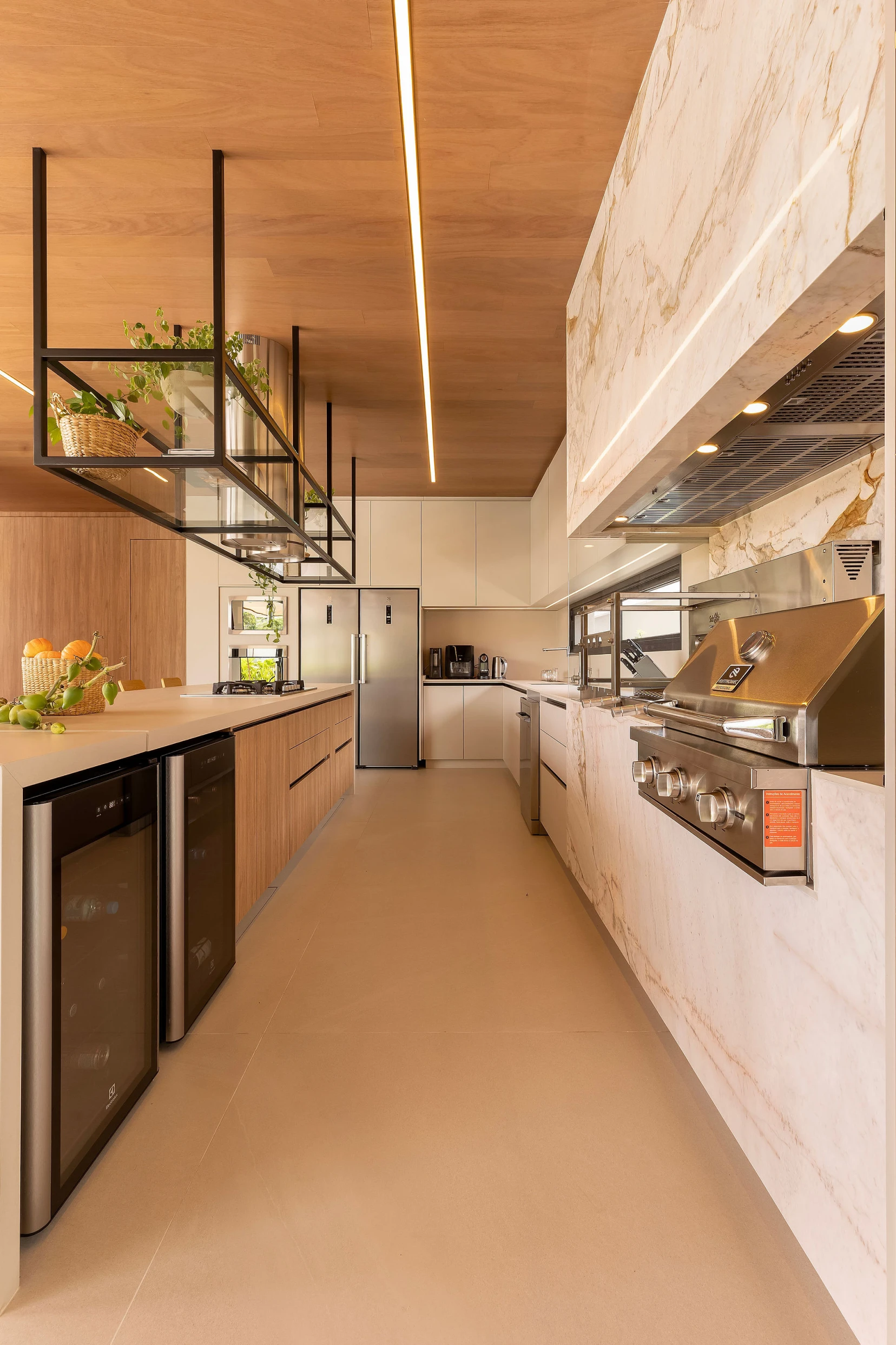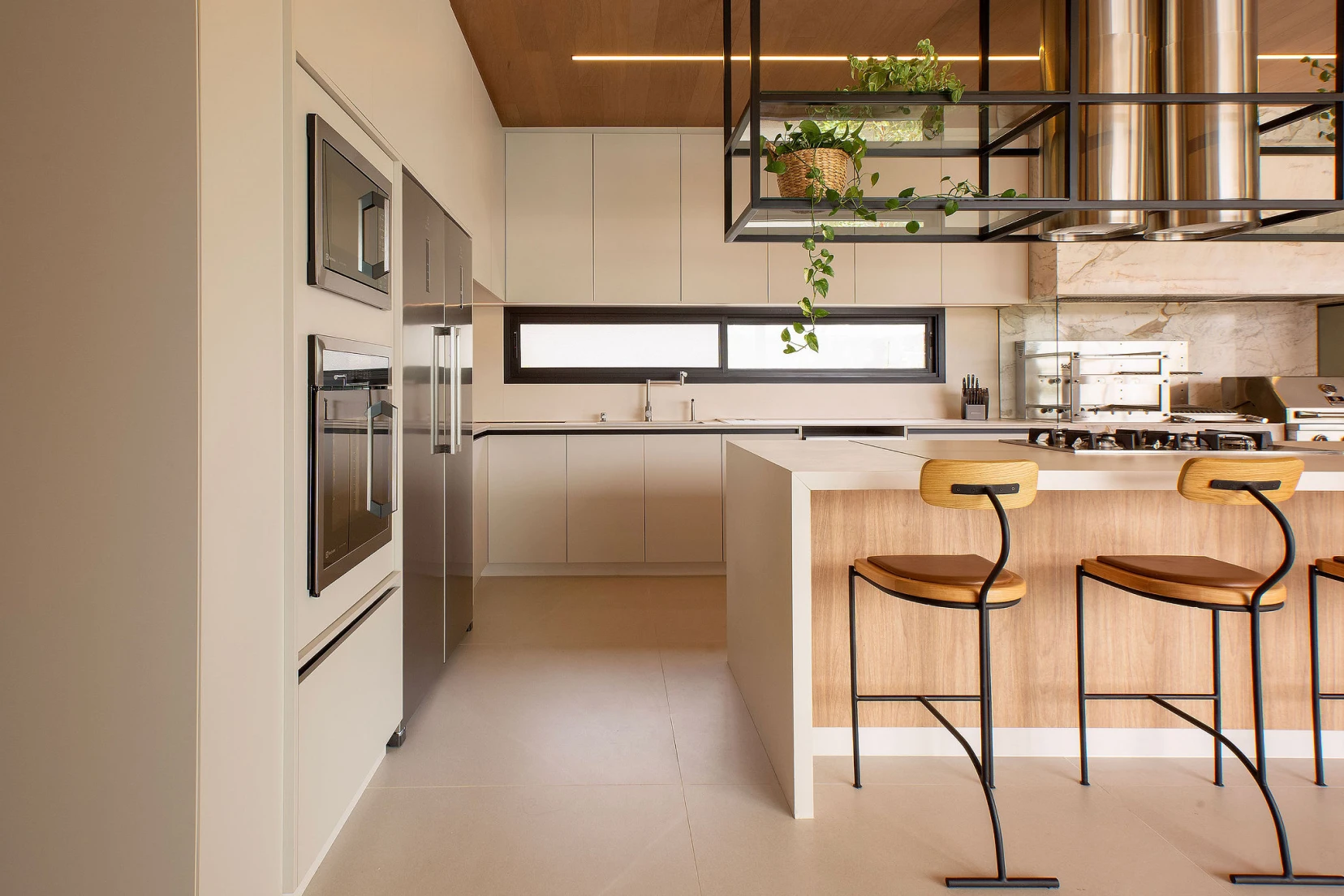 A Casa Luz nasceu do encontro entre um projeto em andamento e o desejo dos moradores de imprimir ao lar uma nova identidade, mais alinhada à sua essência e ao seu modo de viver. Mais do que adaptar-se ao espaço, os móveis foram desenhados para potencializar sua funcionalidade, respeitar as proporções arquitetônicas e reforçar o conceito de unidade. Painéis em madeira ocultam portas e armários, prolongando visualmente os planos e ampliando a percepção de fluidez. As ilhas promovem organização sem interromper a circulação, e os volumes se integram de forma discreta e precisa ao desenho da arquitetura.