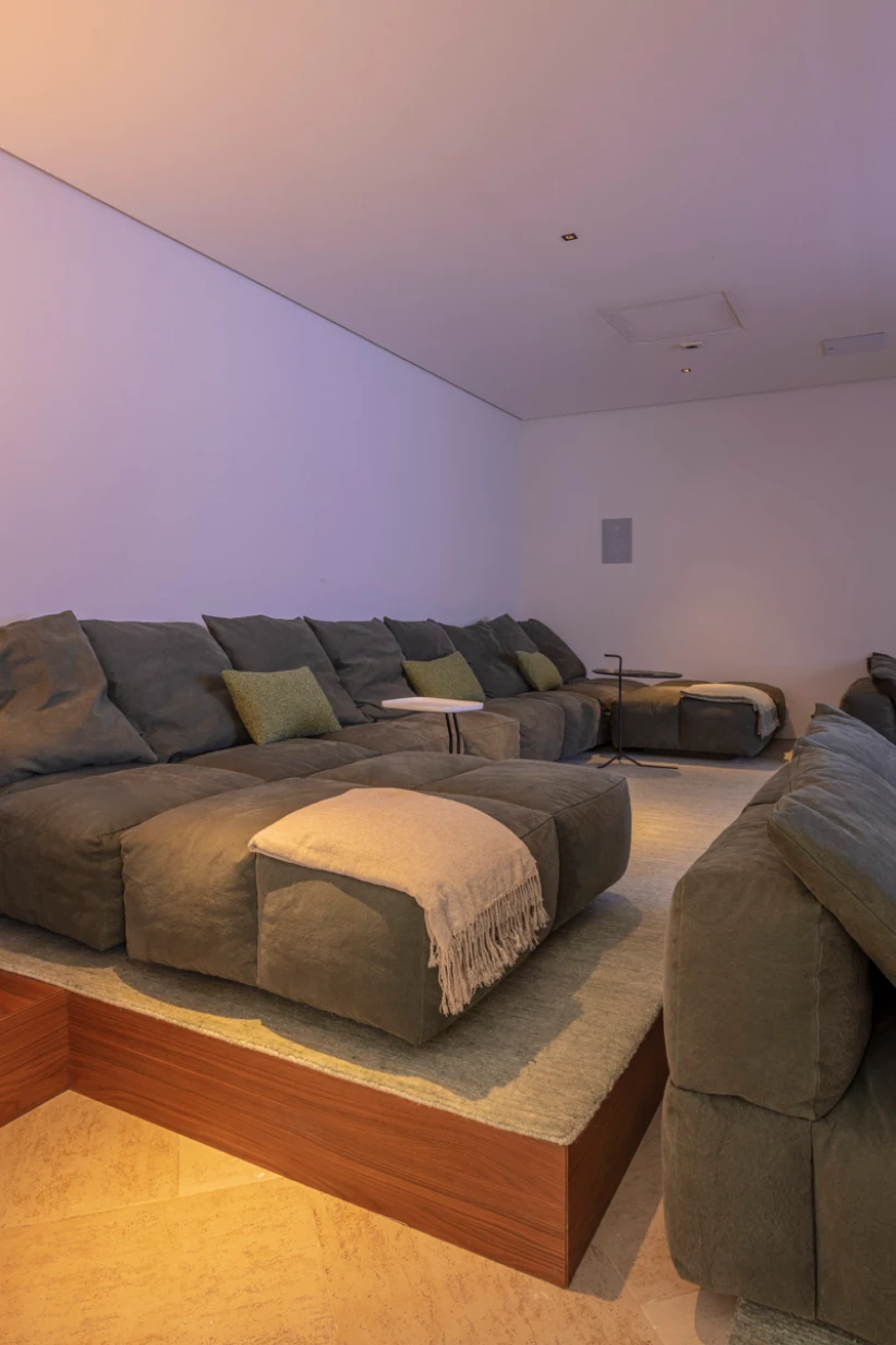 Uma casa de veraneio pensada para uma família que adora receber e vive com a casa cheia. E para tornar esses momentos ainda mais especiais, nada melhor do que ter um cinema particular para aproveitar filmes e séries com todo conforto.