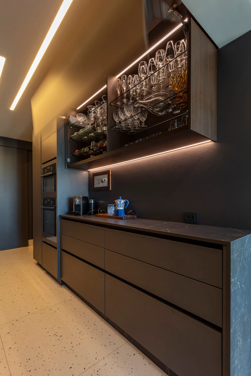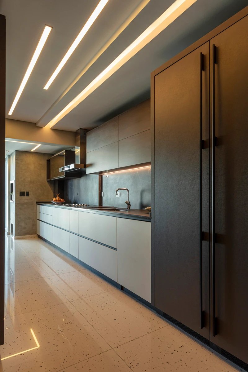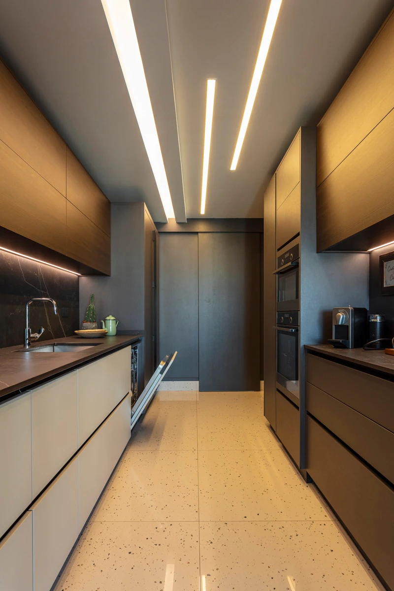 Cada ambiente foi desenhado para valorizar o uso cotidiano, com soluções que aliam estética e eficiência. A cozinha, por exemplo, tornou-se o coração da casa. O amplo balcão transformou a relação com o espaço e trouxe prazer às tarefas diárias. “É minha queridinha. Ter esse balcão fez toda a diferença na hora de preparar minhas receitas”, conta. Já a sala ganhou um ar de elegância descontraída, ideal para receber com charme e conforto.