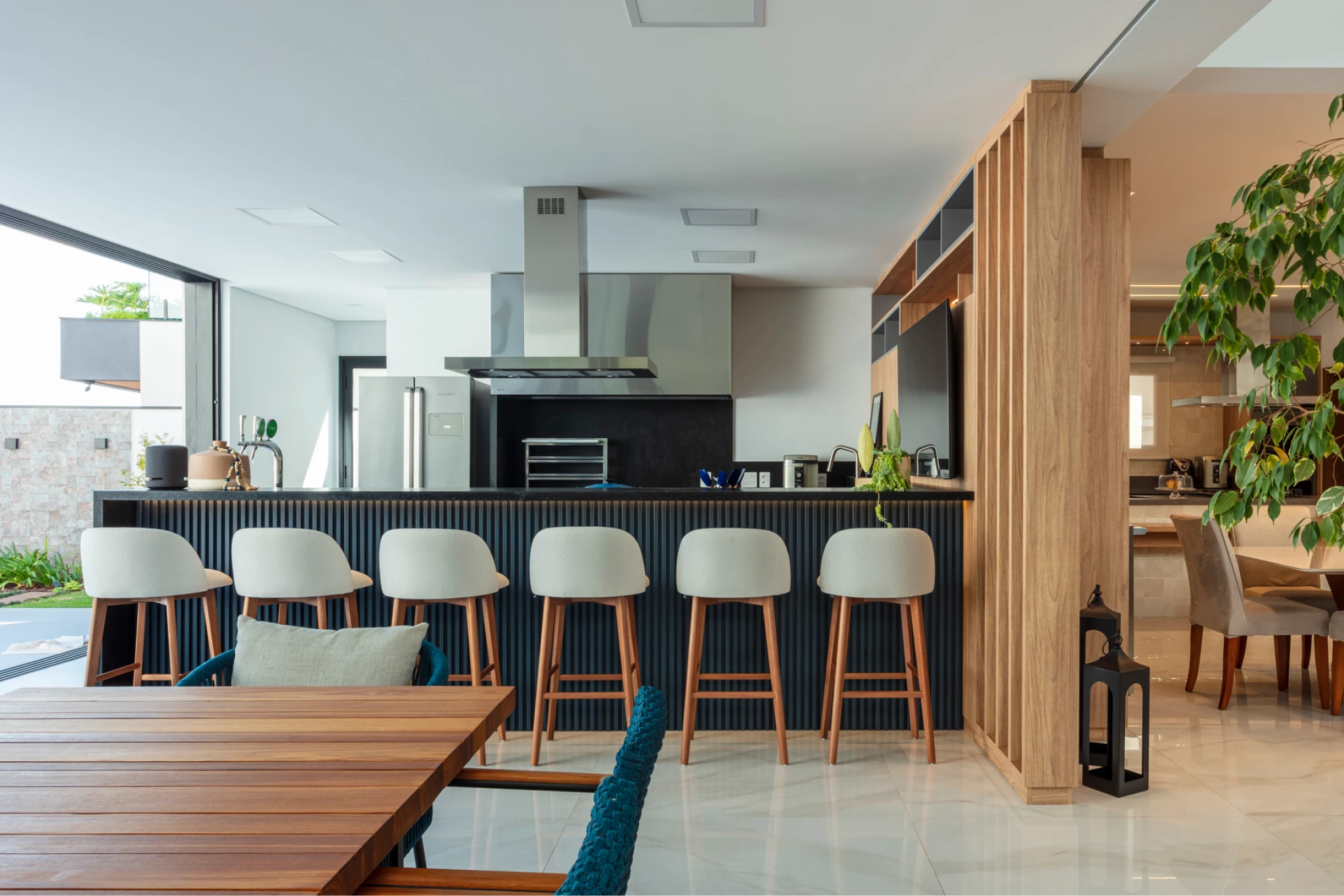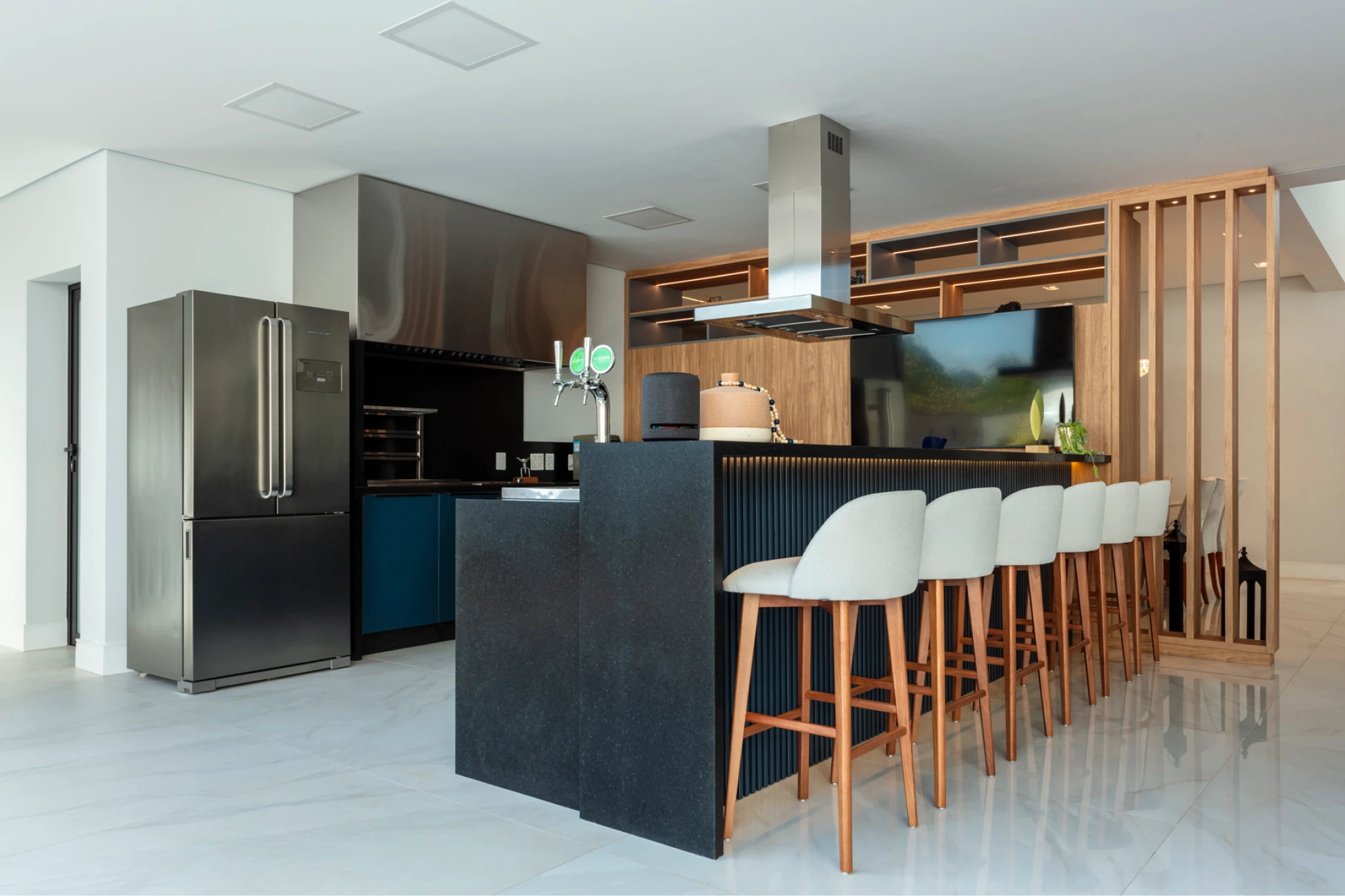 Com atmosfera acolhedora e soluções inteligentes, o projeto executado pela Costa Flores traduziu o estilo de vida dos moradores em ambientes funcionais, elegantes e cheios de personalidade. A integração entre sala, cozinha e gourmet foi pensada para garantir fluidez e praticidade, sem perder a identidade de cada espaço.